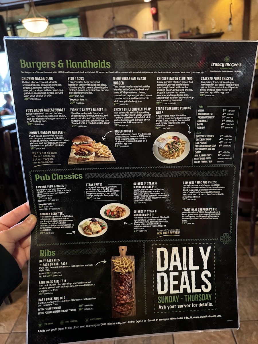 Discover the Delicious D'ARCY MCGEE's KANATA Menu!